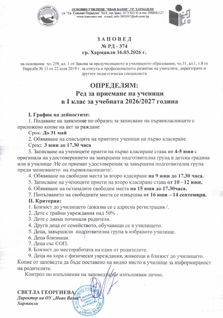 Прием след 7. клас за уч. 2018-2019 година – график на дейностите и наредба