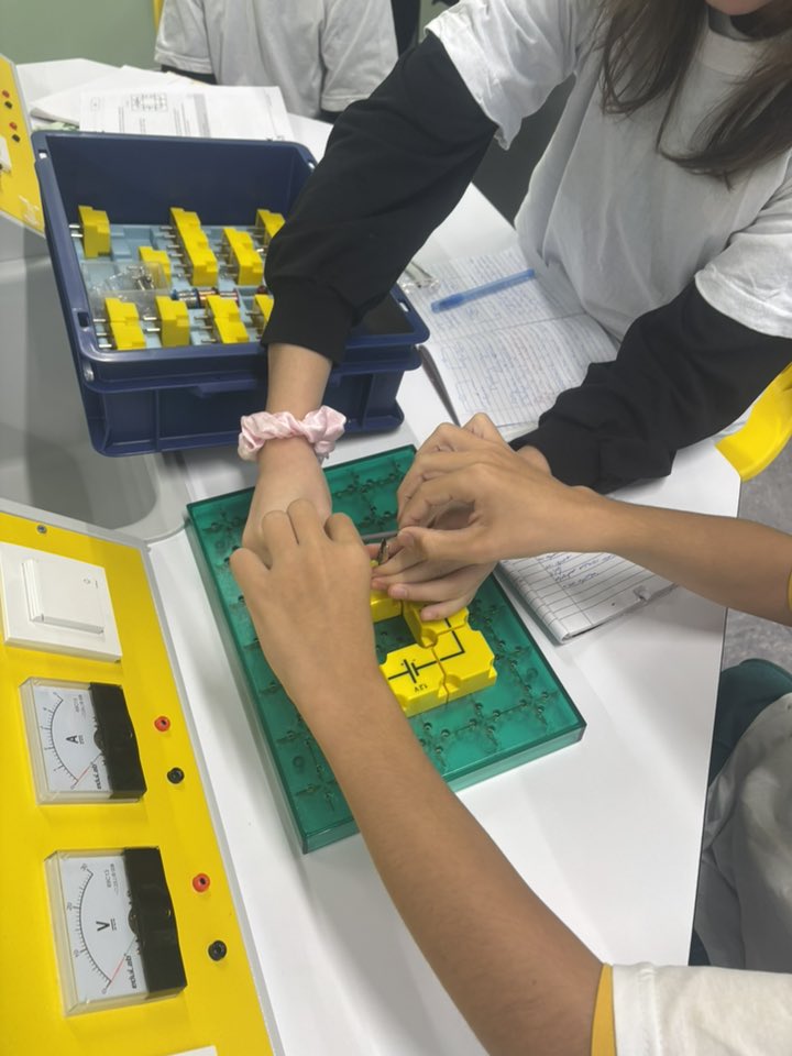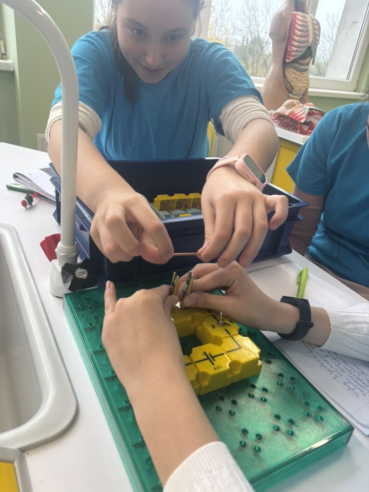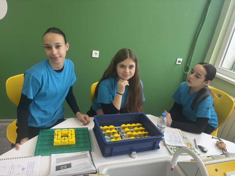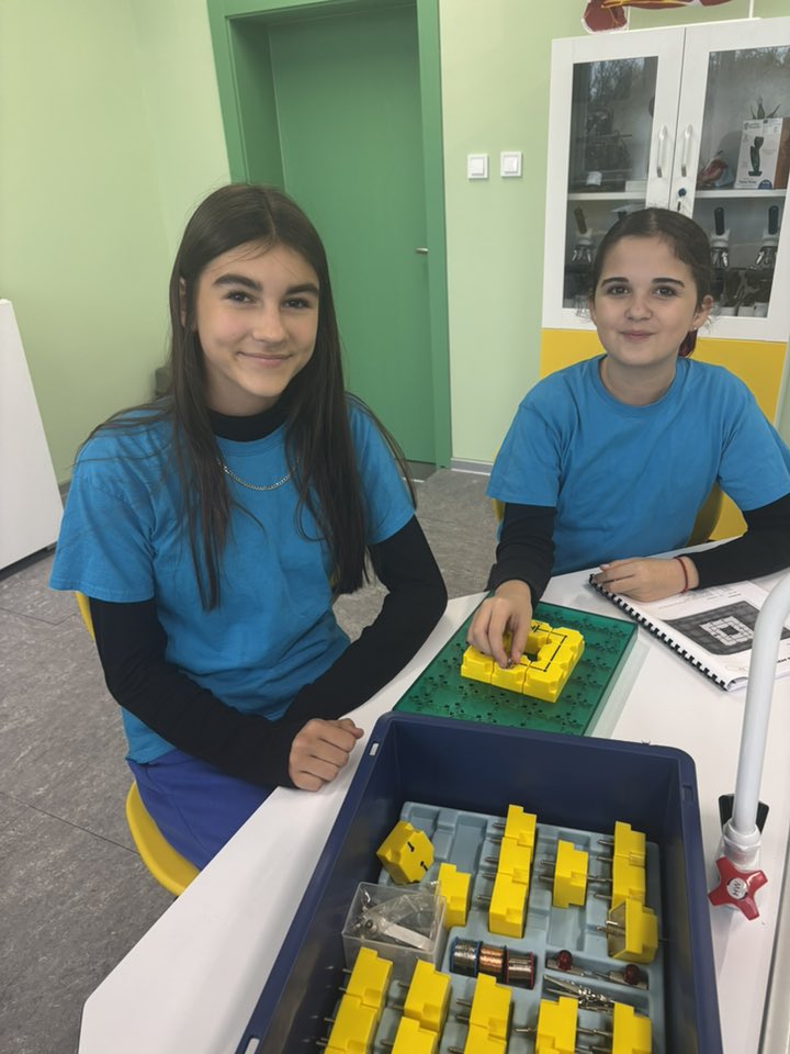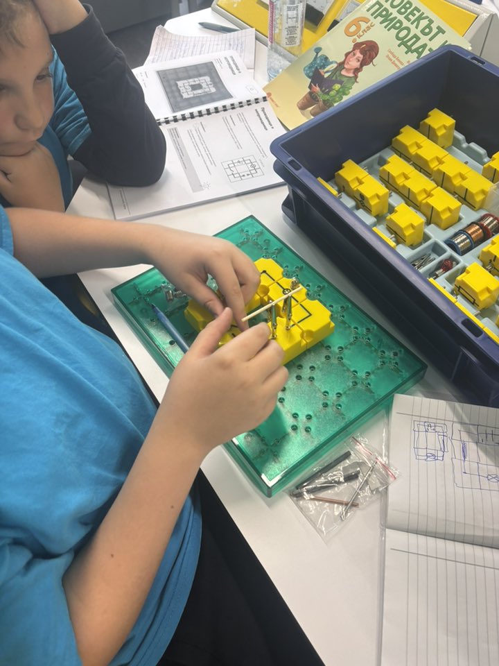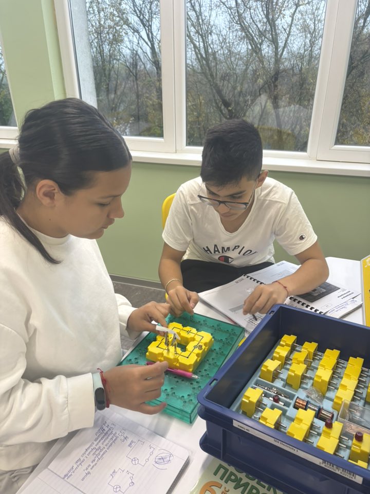 С учениците от 6. В и 6. Г клас участвахме в един необичаен, но много вълнуващ и ползотворен урок на тема ,,Електрически вериги“ .Те сами построиха електрически вериги, в които по пътя на опита проследиха кога протича електричен ток и кога не. Урокът продължи с изследване, при което учениците установиха сами кои вещества са проводници на електричен ток и кои изолатори.